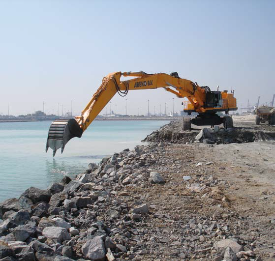 De Hitachi ZX870 is een 120-tons rupsgraafmachine met een uitstekend bereik en een krachtige graafkracht van 30 ton. Dankzij de triple boom en diverse werktuigen is deze machine uitermate geschikt voor uiteenlopende maritieme toepassingen zoals baggerwerk, steenplaatsing en breakwater-projecten. De ZX870 werd onder andere ingezet in Qatar en Egypte voor specialistische onderwaterconstructies.