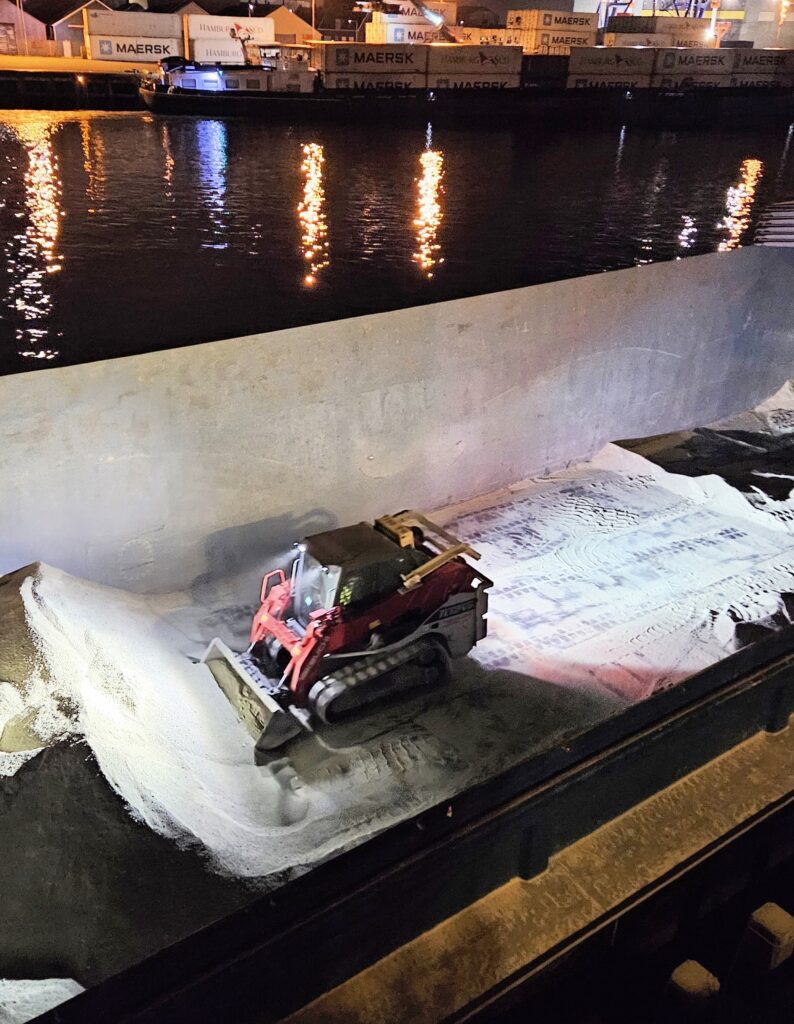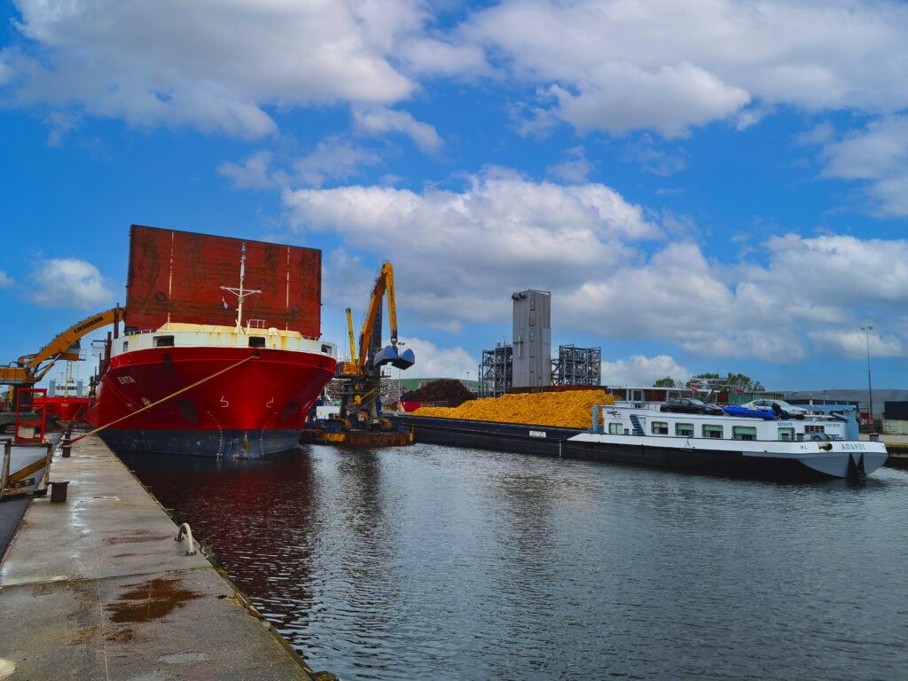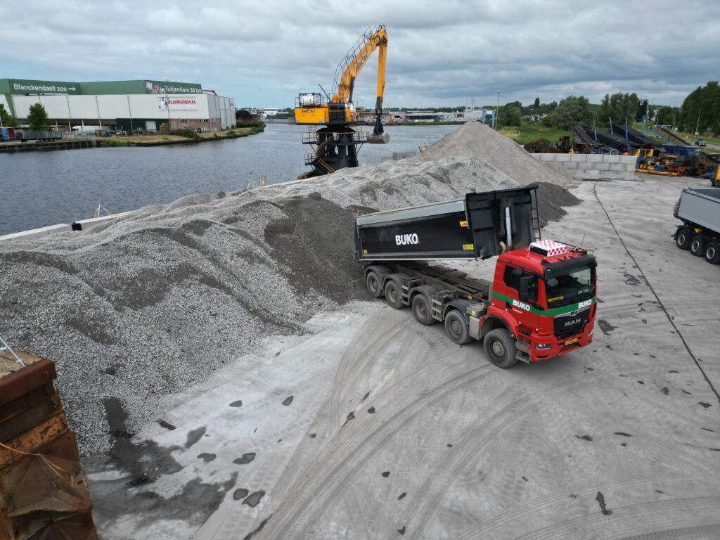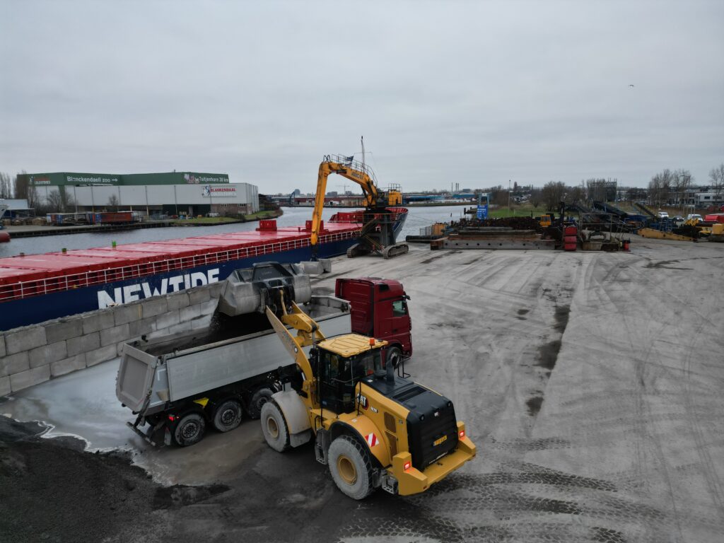 - Uitgerust met grijper voor bulkgoederen