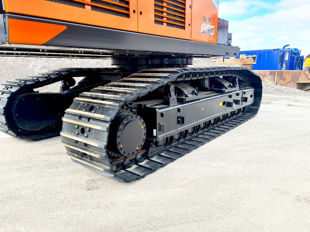 De Hitachi ZX890, met een totaalgewicht van 125 ton, is in onze werkplaats volledig aangepast voor maritieme inzet. De machine werd voorzien van een Abeko Triple giek systeem, waarmee deze nu geschikt is voor specialistisch graaf- en hijswerk op pontons of aan de kade.